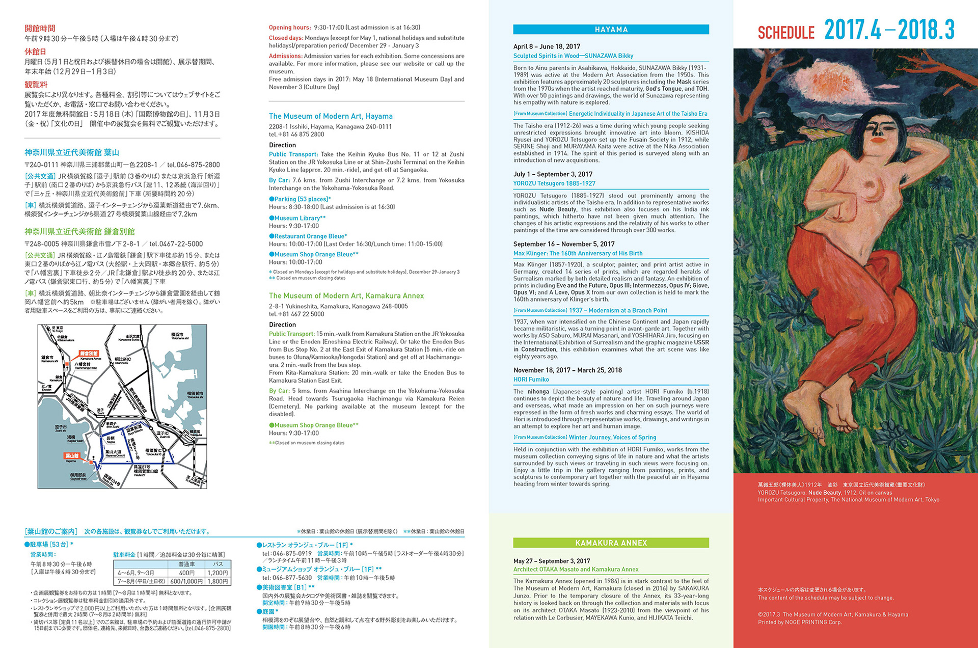 The Museum of Modern Art, Kamakura & Hayama year schedule 2017.4-2018.3 leaflet.